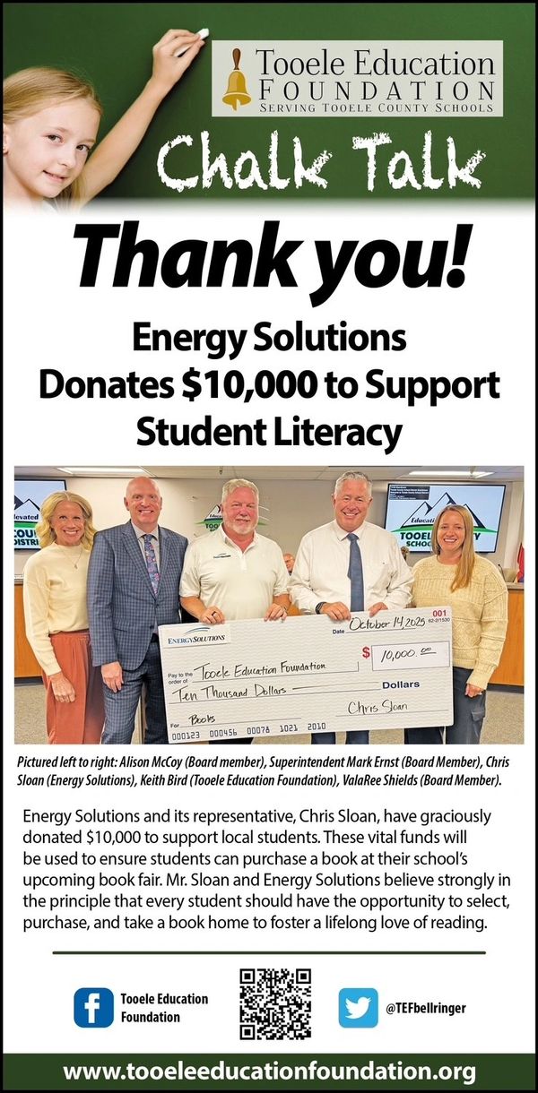 Please help the Tooele Education Foundation in promoting and enhancing excellence in education throughout the Tooele County School District.